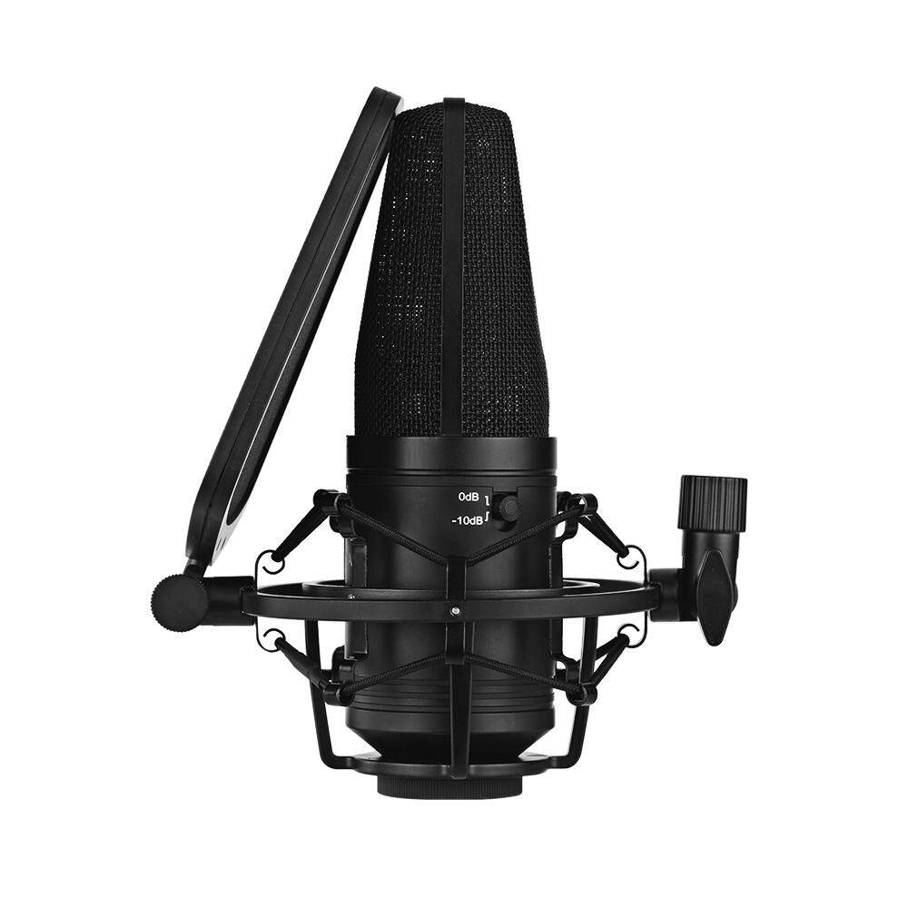 Features: The BOYA BY-M1000 is a 34mm/1.3in diaphragm condenser microphone, with sturdy all-metal housing, it can be mounted on 5/8in arm stand. Included shockmount & pop filter. With 3 selectable polar patterns switch, support Cardioid/Omnidirectional/Bidirectional, easy to deal with all kinds of recording occasions. Low-cut filter switch at 150Hz allows you to eliminate low frequency hum and other low frequency noises; And 0dB/-10dB pad switch is to reduce the pickup sensitivity and output impedance of the condenser microphone. The microphone offers a 20Hz to 20kHz frequency response for accurately reproducing audio signal in a variety of ranges. Uses standard 24V or 48V phantom power, which is supplier through the standard XLR connector. Suitable for capturing instruments and vocals in project and professional recording applications, such as singer, songwriters, podcasters, voiceover artists, field recorders, and home studio recordings.Specifications: Color: Black Material: Aluminum Alloy Acoustic Principle: Condenser Polar Pattern: Cardioid, Omnidirectional, Bidirectional Diaphragm: 34mm(1.3inch) Frequency Response: 20-20,000Hz Sensitivity: -33±3dB(0dB=1V/Pa at 1KHz) SN: 80dB and more Output Impedance: 20 Ohm Power Requirement: 24V or 48V Phantom Cable Length: (10ft) Item Size: 11.5 * 16.5 * 20.0cm / 4.5 * 6.5 * 7.9in Item Weight: 664g / 23.4oz Package Size: 24.3 * 20.3 * 15.4cm / 9.6 * 8.0 * 6.1in Package Weight: 1083g / 38.2ozNote: The arm stand is not included.