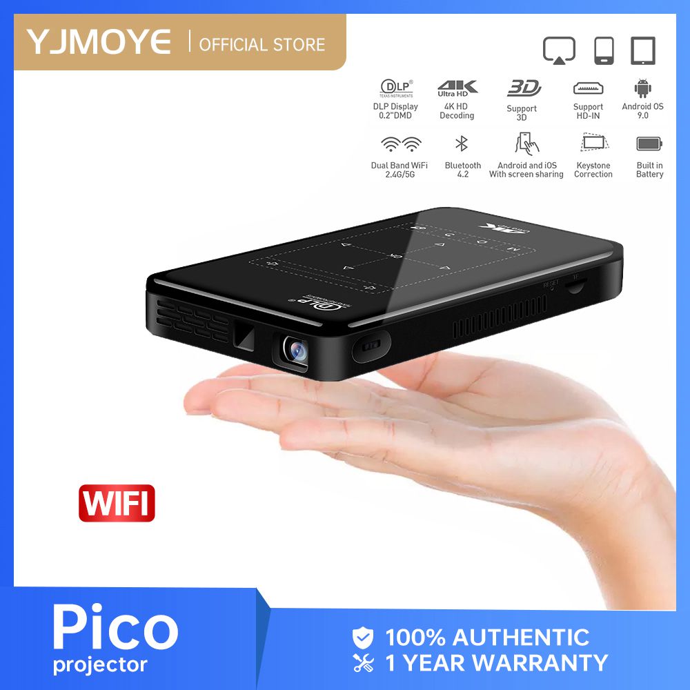 YJMOYE Portable Digital Projector P09-ll Mini 4K1080P Bluetooth Smart WiFi Wireless Charged Projectors for Home or Outdoor Theater, Entertainment