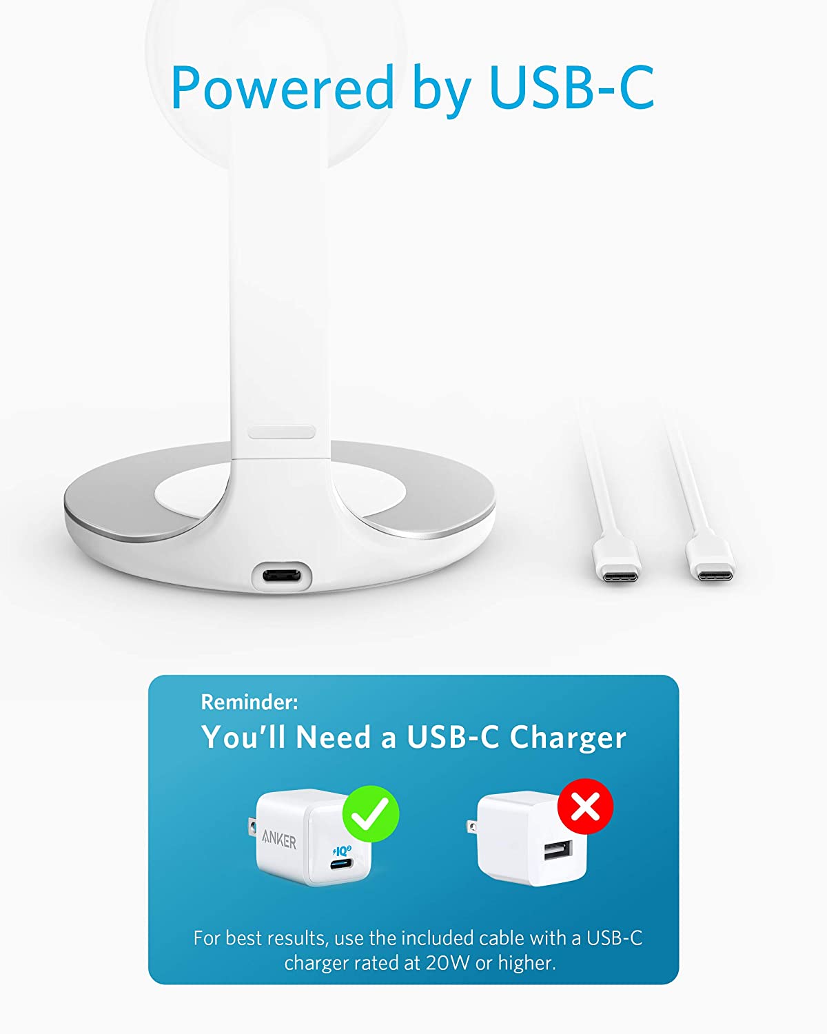 Anker Charger PowerWave Magsafe Charger 2-in-1 Stand with 5 ft USB-C Cable, Wireless Charger Station for iPhone 14/13/12 Series AirPods Pro (No AC Adapter)