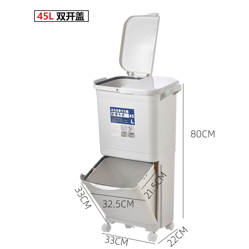 Garbage Classification Household Double-Layer Trash Can Dry Wet Separation Dustbin Japanese-Style Large Kitchen Trash Can with Lid
