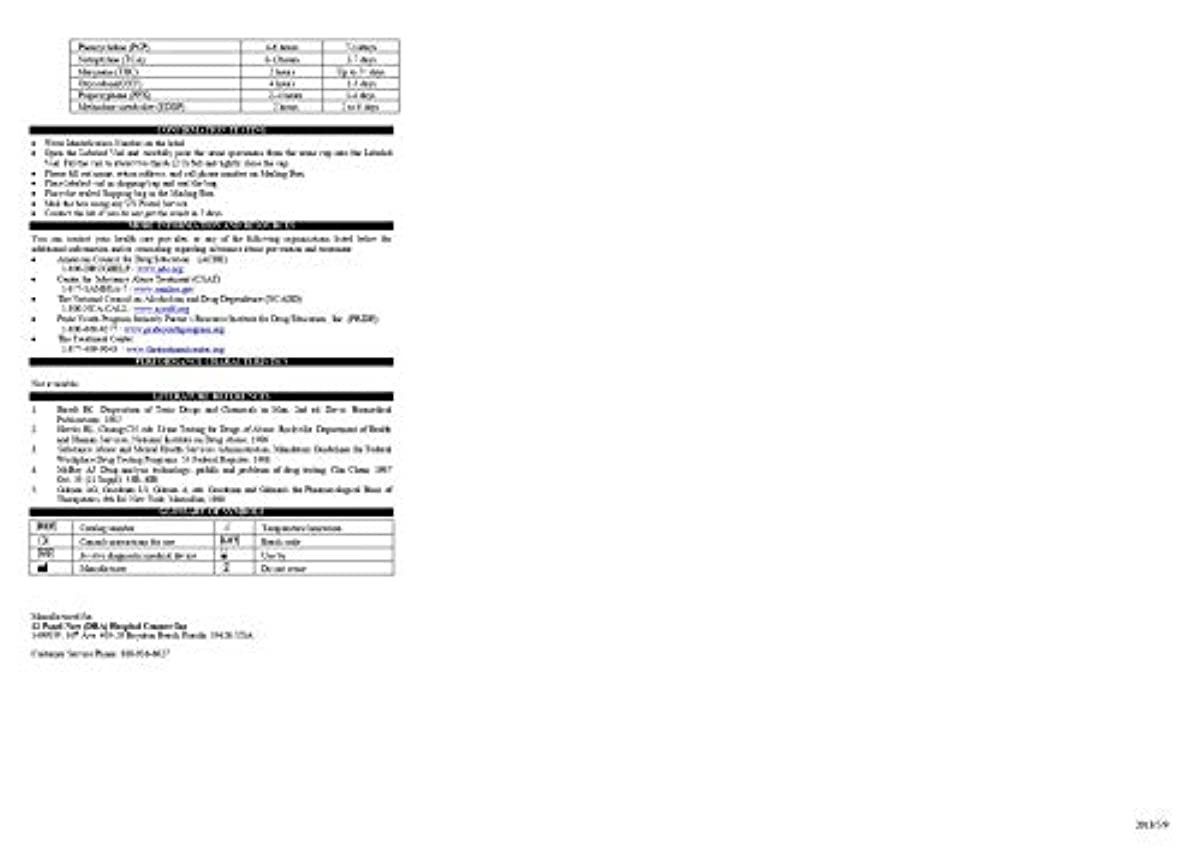 Contents of the Kit One Test Device, Instructions for Use, Label for Shipping Sample Precautions Do not use after the expiration date. The device should remain in the sealed pouch until use. Do not re-use the test. Storage Store between 39.2°F and 86°F. DO NOT FREEZE. Keep away from direct sunlight, moisture and heat. Urine Collection Collect urine specimen in the provided test cup. Urine collected at any time of the day may be used.
