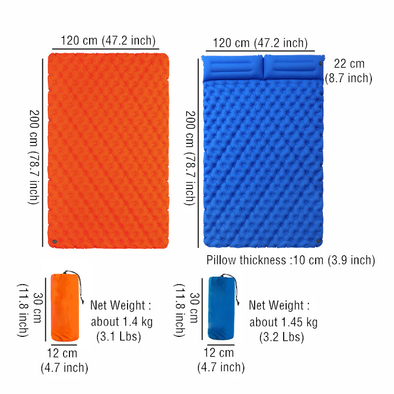 Comfort and no leak is the priority,with air-support cells design to limit air movement and heat loss.The cubed surface design fits the body's natural curves,whether you sleep on this on your back,sides or stomach,you can always feel comfortable. The specially designed Two Way Valve prevent the air leak,so there's no worry about get up and inflate it in the middle of the night, just have a good sleep.