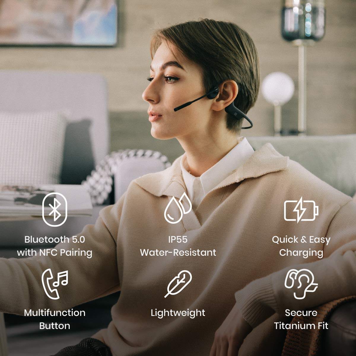 Engineered with 7th generation, patented bone-conduction technology, this headset keeps you connected and aware of your surroundings.
