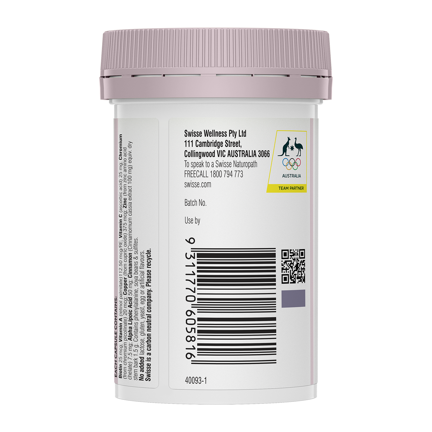 --------------- BENEFITS --------------- Helps sugar & carbohydrate metabolism Supports collagen formation Supports skin regeneration --------------------- INGREDIENTS --------------------- KEY INGREDIENTS: Chromium and cinnamon help support sugar metabolism whilst zinc contributes to the metabolism of carbohydrates. Collagen is a major structural protein found in the dermis of the skin, where the first signs of ageing occur. Vitamin C maintains the health and formation of collagen to support skin health and regeneration. Copper plays a role in the cross-linking of collagen and elastin, important for supporting the integrity and structure of the skin. Vitamin C plays a key role in supporting the strong, elastic structure of collagen, helping to maintain skin firmness and elasticity. EACH CAPSULE CONTAINS: Biotin 25 mcg; Vitamin A (retinol palmitate) 112.50 mcg/RE; Vitamin C (ascorbic acid) 25 mg; Chromium (from chromium picolinate) 20 mcg; Copper (from cupric oxide) 375 mcg; Zinc (from zinc amino acid chelate) 7.5 mg; Alpha Lipoic Acid 50 mg; Cinnamon (Cinnamomum cassia extract 100 mg) equiv. dry stem bark 1.5 g. ALLERGEN INFORMATION Contains phenylalanine, soya beans & sulfites. No added lactose, gluten, yeast, egg or artificial flavours. ------------------- DIRECTIONS ------------------- ADULT DOSAGE: Two capsules daily, during or immediately after a meal, or as directed by a healthcare professional. --------------- STORAGE --------------- Store below 25°C in a cool, dry place. Do not use if cap seal is broken. ----------------- WARNINGS ----------------- If you are pregnant, or considering becoming pregnant, do not take vitamin A supplements without consulting your doctor or pharmacist. When taken in excess of 3000 mcg/RE, vitamin A can cause birth defects. The recommended daily amount of vitamin A from all sources is 700 mcg/RE for women and 900 mcg/RE for men. Vitamin & mineral supplements should not replace a balanced diet.