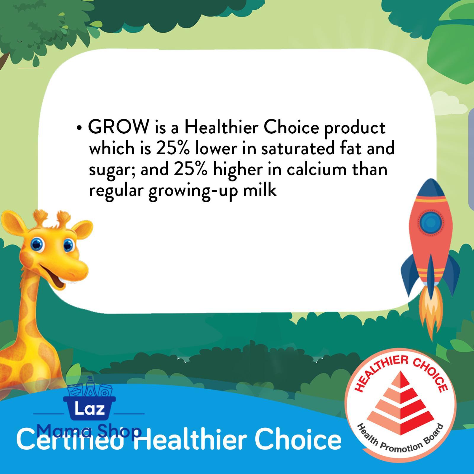 Abbott GROW milk powder for school-going children is formulated to provide essential nutrients to support their overall growth and development. GROW School is scientifically formulated to support the nutritional needs of your child in their formative years. Brain Development: DHA is an important building block for the development of brain and eyes. Growth: Calcium helps to support development of strong bones and teeth. Vitamin D helps support Calcium absorption and improves bone strength. Immunity: Antioxidant system with Zinc, Vitamins C and E to help protect cells from free radicals. Iron and Zinc are necessary for normal immune function. Unique vegetable fat blend with No Palm Oil. GROW is a Healthier Choice product which is lower in saturated fat and higher in calcium.