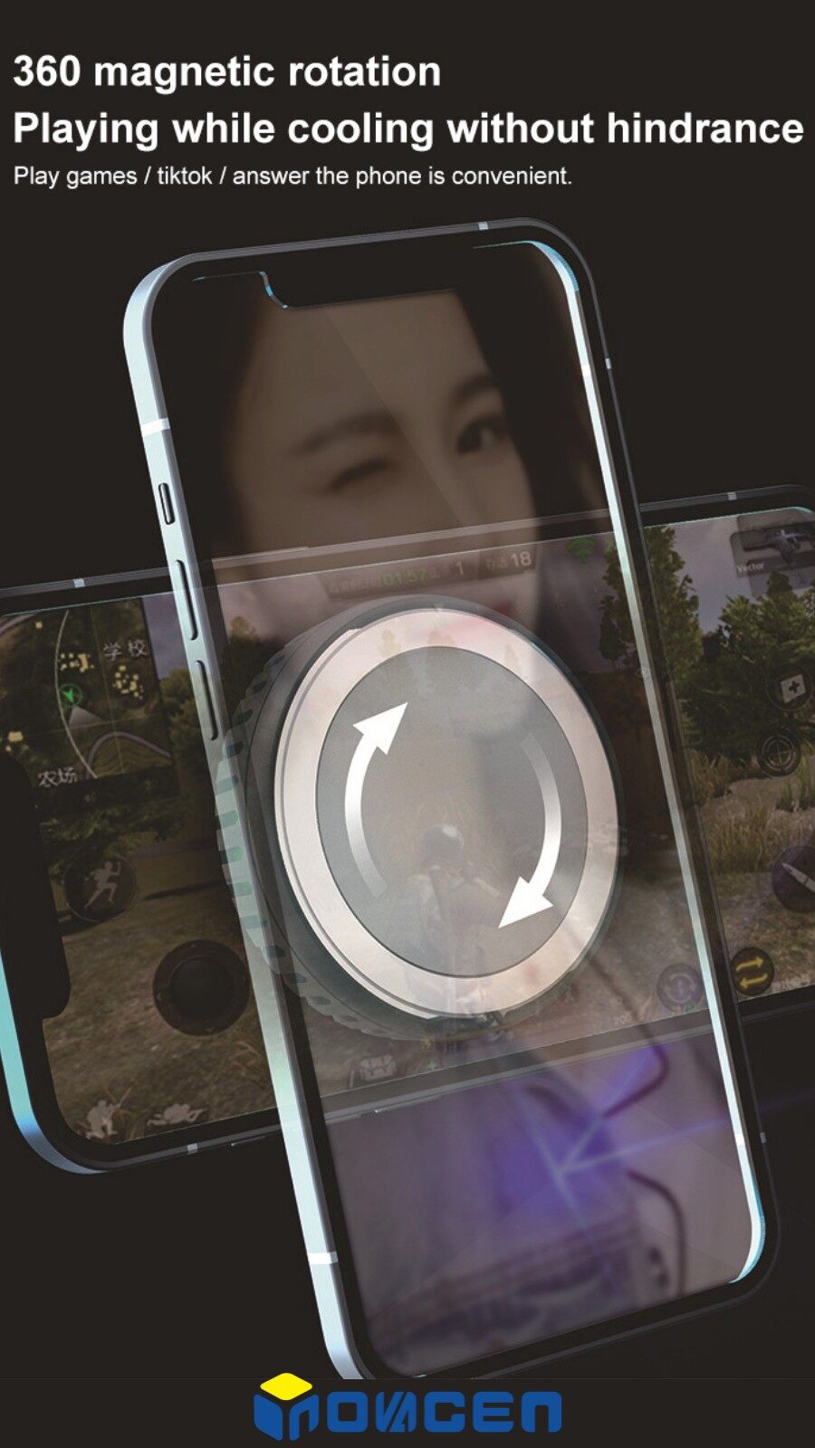 INOVAGEN Magnetic Phone Cooler With Phone Stand&Wireless Charging/Phone Radiator For Gaming PUBG Heat Dissipation MagSafe Support,15W QC/PD Fast Charging