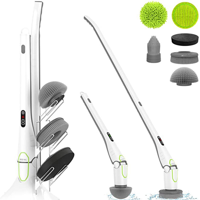 GOOD PAPA Electric Spin Scrubber, Floor Shower Power Scrubber Cleaning Brush with Long Handle 2 Speed HD LED Display, 6 Replaceable Brush Heads Cleaning for Kitchen, Bathroom, Floor, Tile, Bathtub