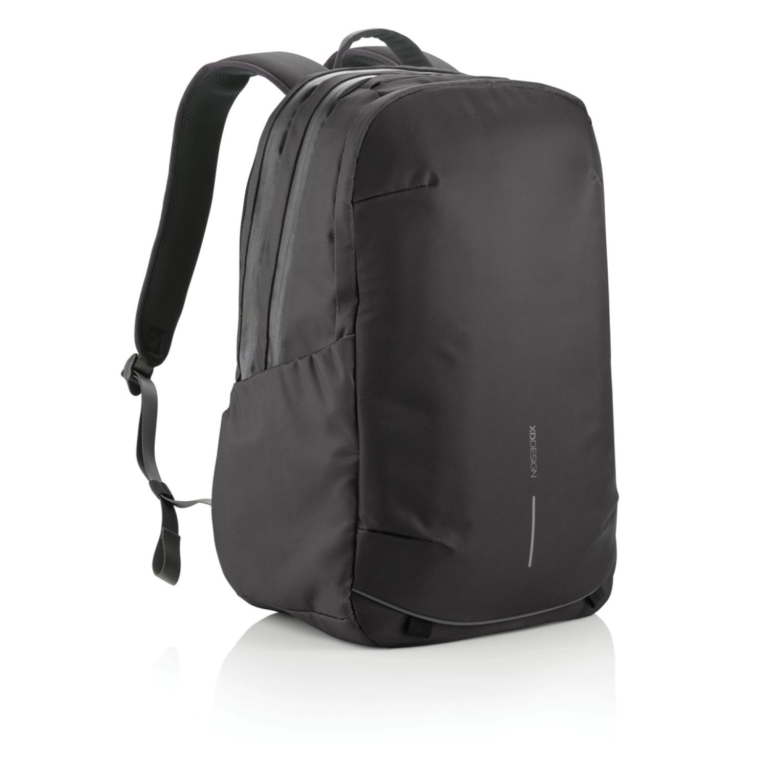 Ready to unplug and explore? With the Bobby Explore, you go from daily commuting to a weekend trip with the same backpack. Durable and weather resistant, this backpack takes safety and comfort to the next level. Your professional belongings are protected with hidden and water repellent zippers, a padded laptop pocket and an interior RFID safety pocket. The padded back panel and adjustable chest stripe enhance breathability and improve posture, relieving the weight from your shoulders. Store everything you need with the expandable front pocket and an additional shoe pocket that can also be used for dirty and wet clothes. In addition, you can find an integrated USB charging port, a cool magnetic zipper puller, a quick access top pocket and external bottle pockets. Bobby Explore is made with recycled materials and Aware™ technology. Each Bobby Explore reuses 91 plastic bottles and saves 54 litres of water in the production process.