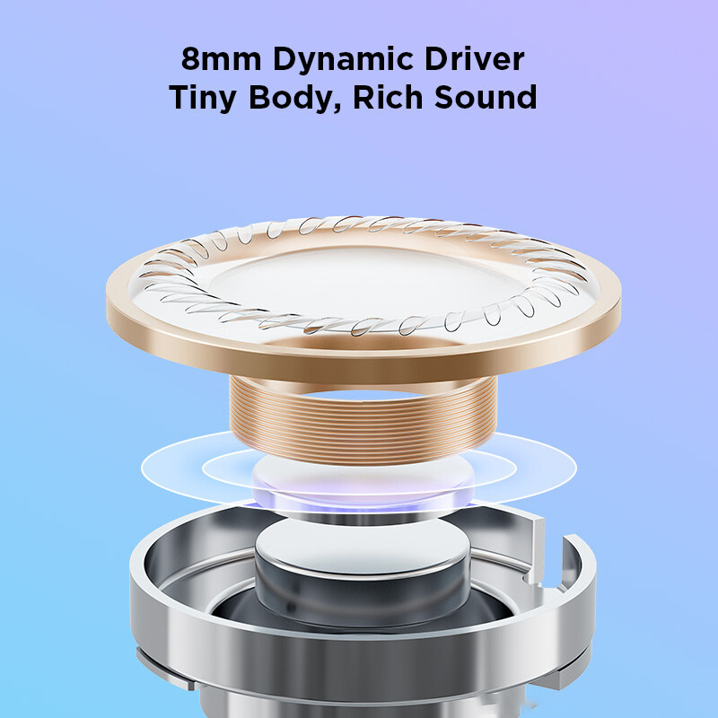 Thanks to an 8mm PET dynamic driver and professional acoustic tuning technology, the earbuds reproduce rich. powerful sound despite their small size. Enjoy deep bass, and clear mid and high tones with the Omthing AirFree Buds. With AAC codec, you can also enjoy high-quality sound on your Android and iOS device.