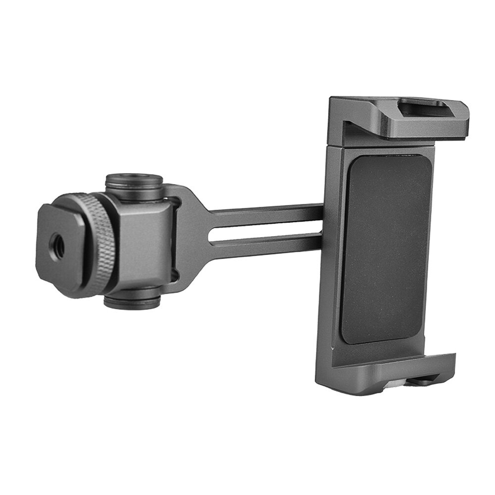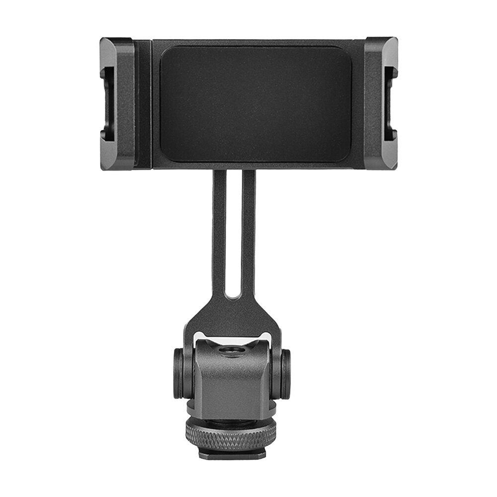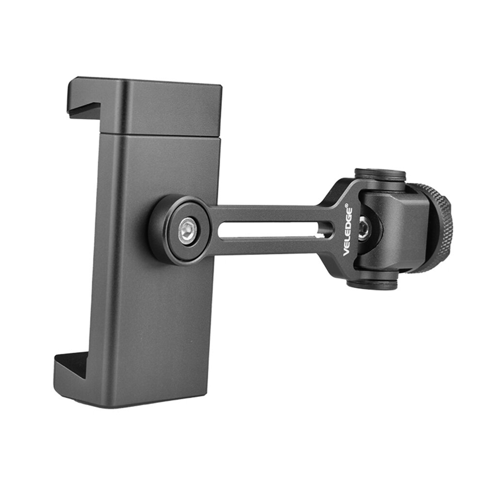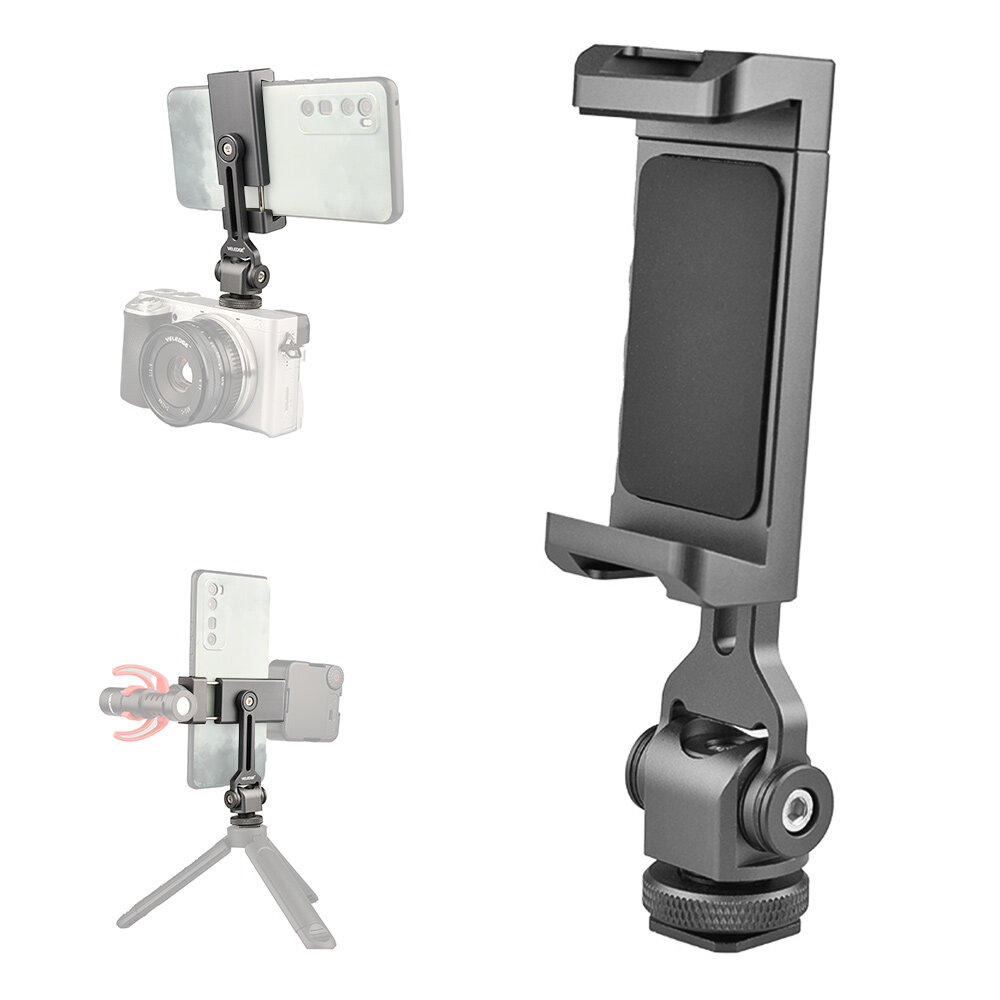 VELEDGE Aluminum Alloy Phone Holder Clamp Phone Tripod Mount 360° Rotatable with Dual Cold Shoe Mounts for Smartphone Vlog Selfie Live Streaming Video Recording