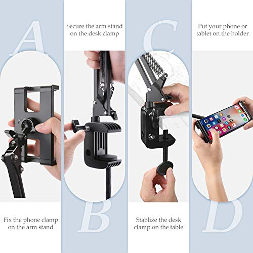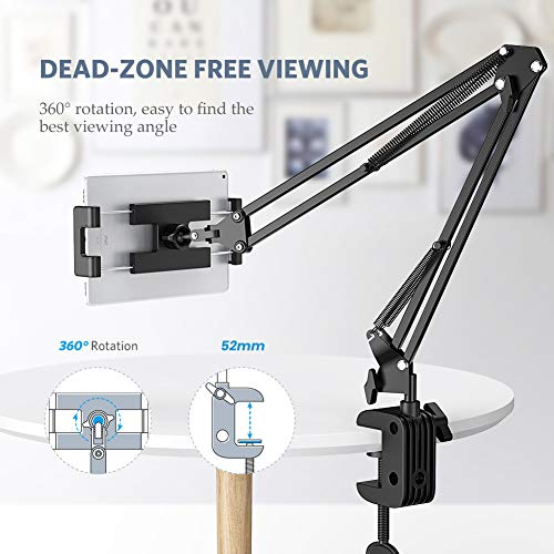 UGREEN Tablet Mount Lazy Holder Adjustable Long Arm Clamp Compatible for iPad Air Pro Mini, iPhone 11 Pro Max SE X 8 7 6 6S, Samsung Galaxy S9 Plus S8, Nintendo Switch, Max 12.9 Inch Cell Phone Tablet
