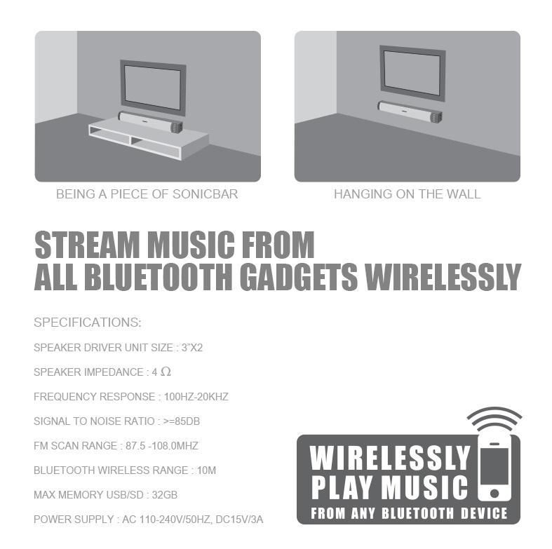 SonicGear SonicBar 3000 BTMI TV Sound Enhancement with Bluetooth/ Radio/ USB/ TF Card