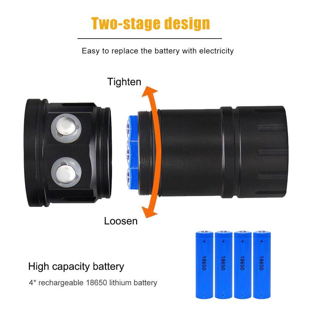 Asafee 20000LM XM-L2 LED Diving Flashlight XHP90 LED Photography Video light underwater 100m waterproof Tactical torch Lamp white red purple light