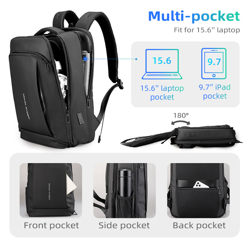 Mark Ryden Slim Laptop Backpack Men Thin Back Pack 15.6 inch Work Man Backpack Business Bag Unisex Black Ultralight Backpack