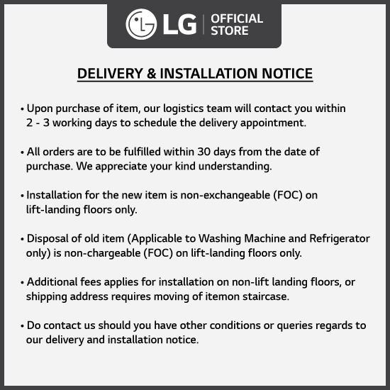 [Bulky] LG FV1409S4W 9KG AI Direct Drive Front Load Washing Machine + Free Delivery + Free Installation + Free Disposal